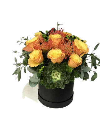Siyah Kutuda Turuncu Gül Ve Sukulent | Çiçek Bankası